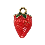 Gold Plated Enamel Red Strawberry Charm, 14mm
