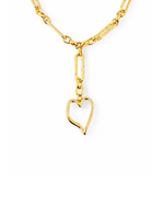 A modern take on love, this lariat-style necklace features an elongated chain with a delicate open heart pendant that dangles beautifully at the center. Designed to be worn at 23", the necklace adds a touch of elegance and movement to your look. Whether you're dressing up for a special occasion or adding a subtle statement to your everyday outfit, this piece exudes simplicity and charm in one effortlessly chic design