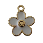14K Gold & Rhodium Plated White Enamel Daisy Charm, 15mm