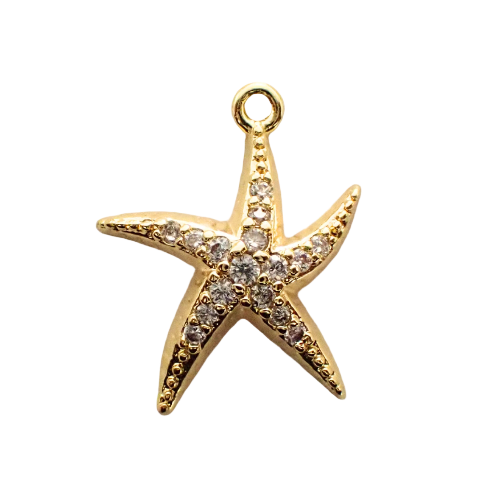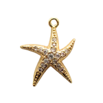 18K Gold Plated Zircon Accent Starfish Charm, 16mm