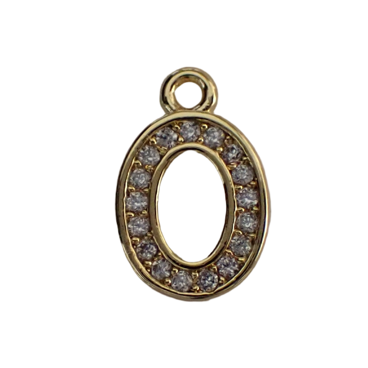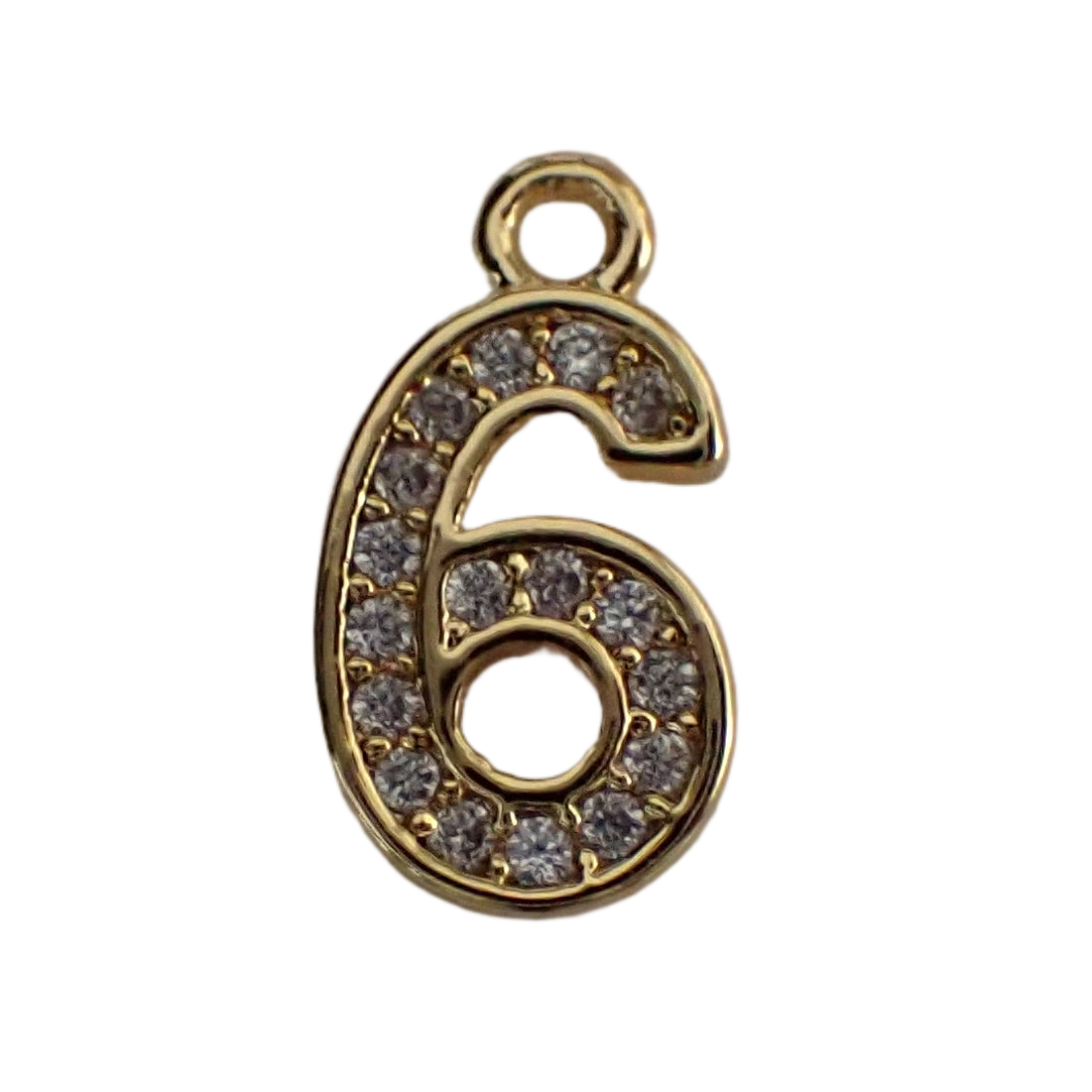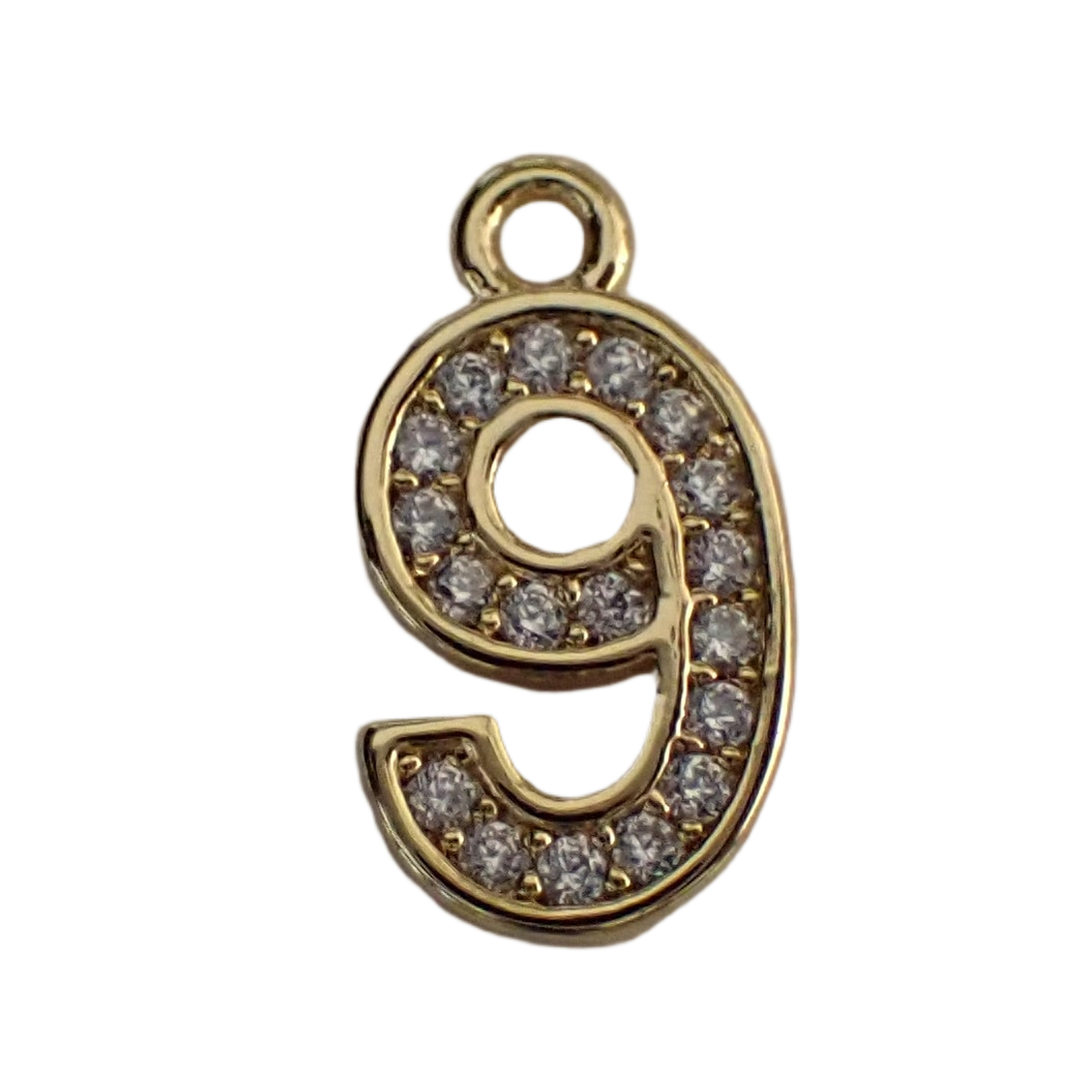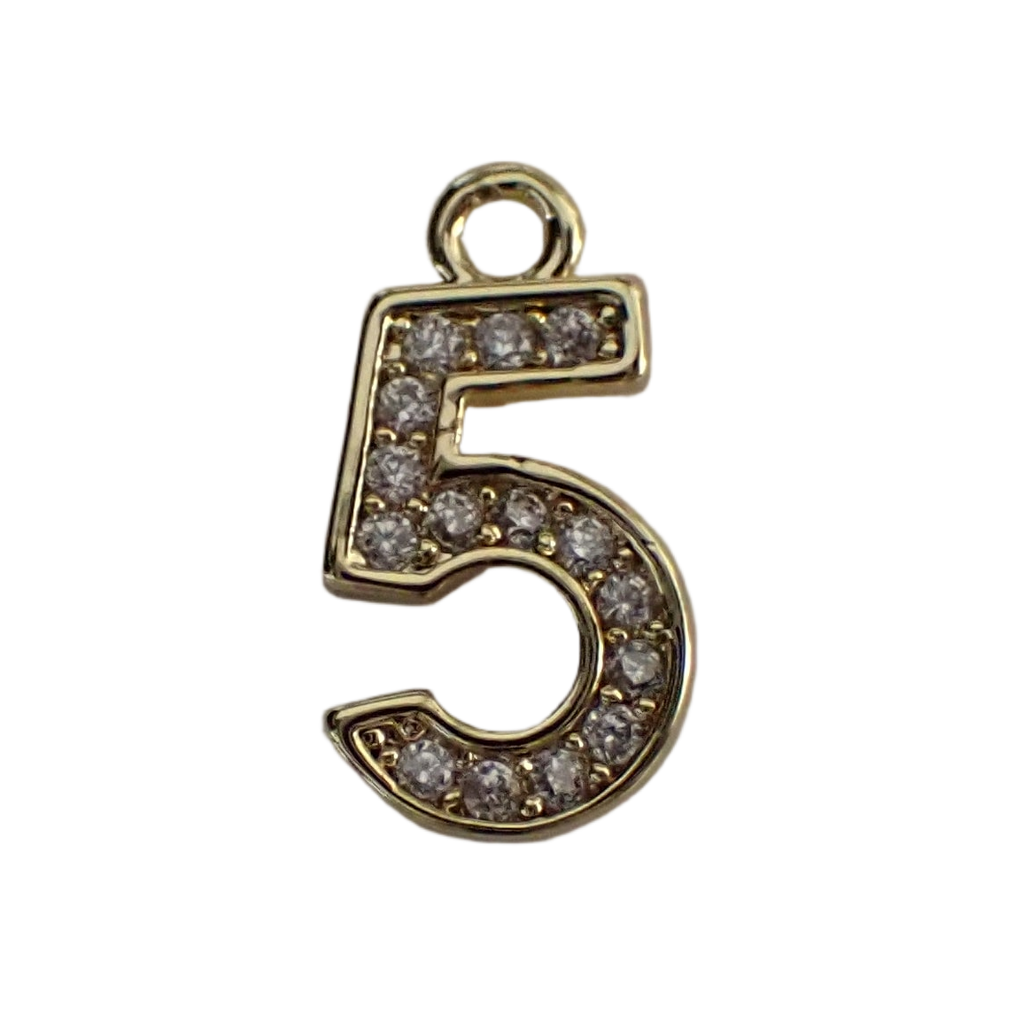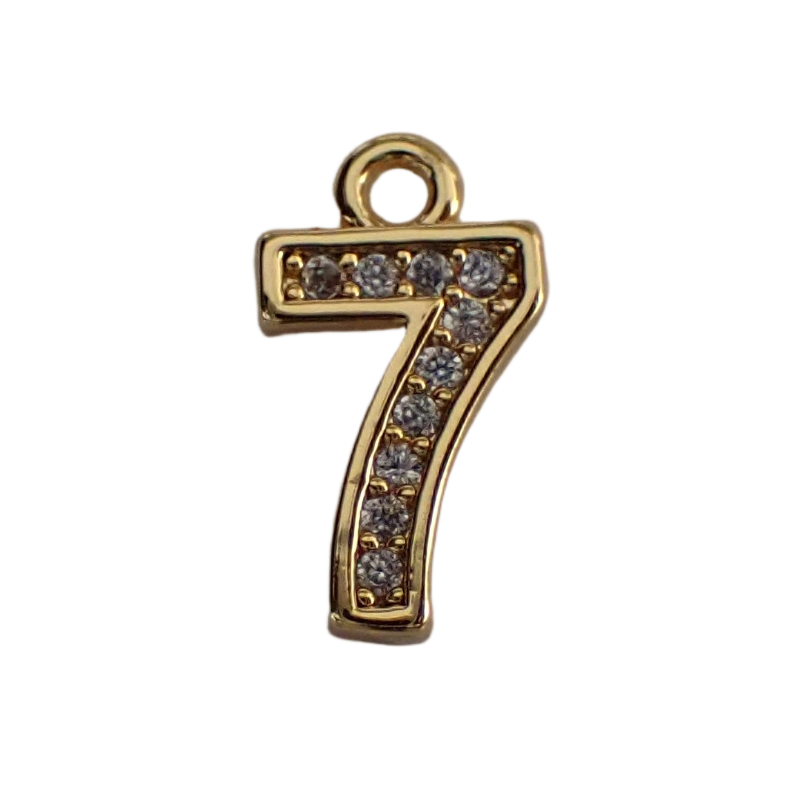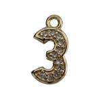 18K Gold Plated Zircon Number Charm, 11.5mm