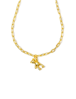 Single pendant gold plated paperclip chain necklace with hanging teddy charm. Offered in 3 lengths.