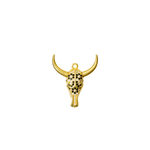 18K Gold Plated Black Zircon Accent Large Bull Skull Charm, 32mm