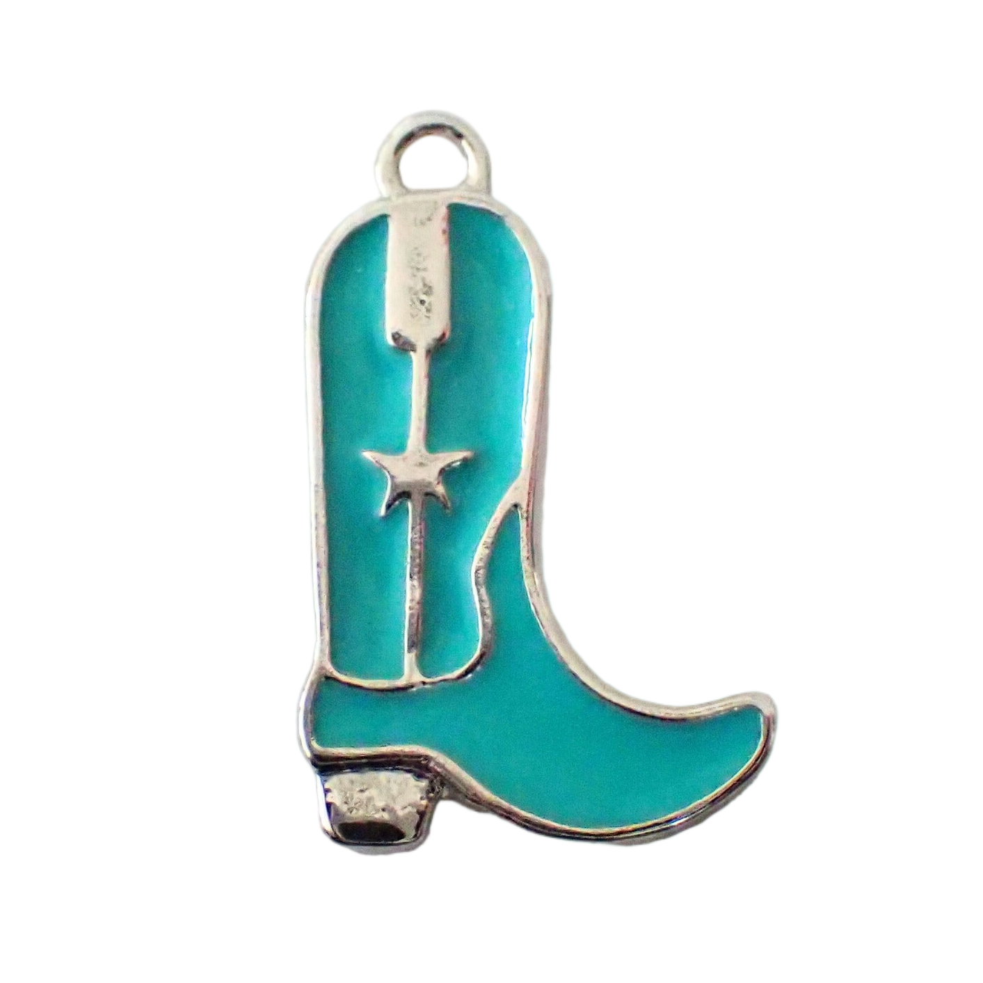 Rhodium Plated Enamel Cowboy Boot Charm, 20mm