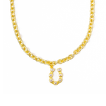 Gold Plated Necklace with Zircon Horseshoe Pendant styled on 6mm O-Ring Chain